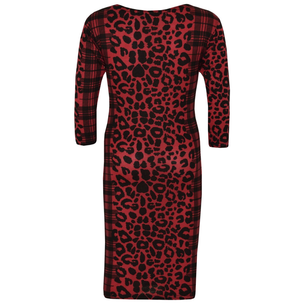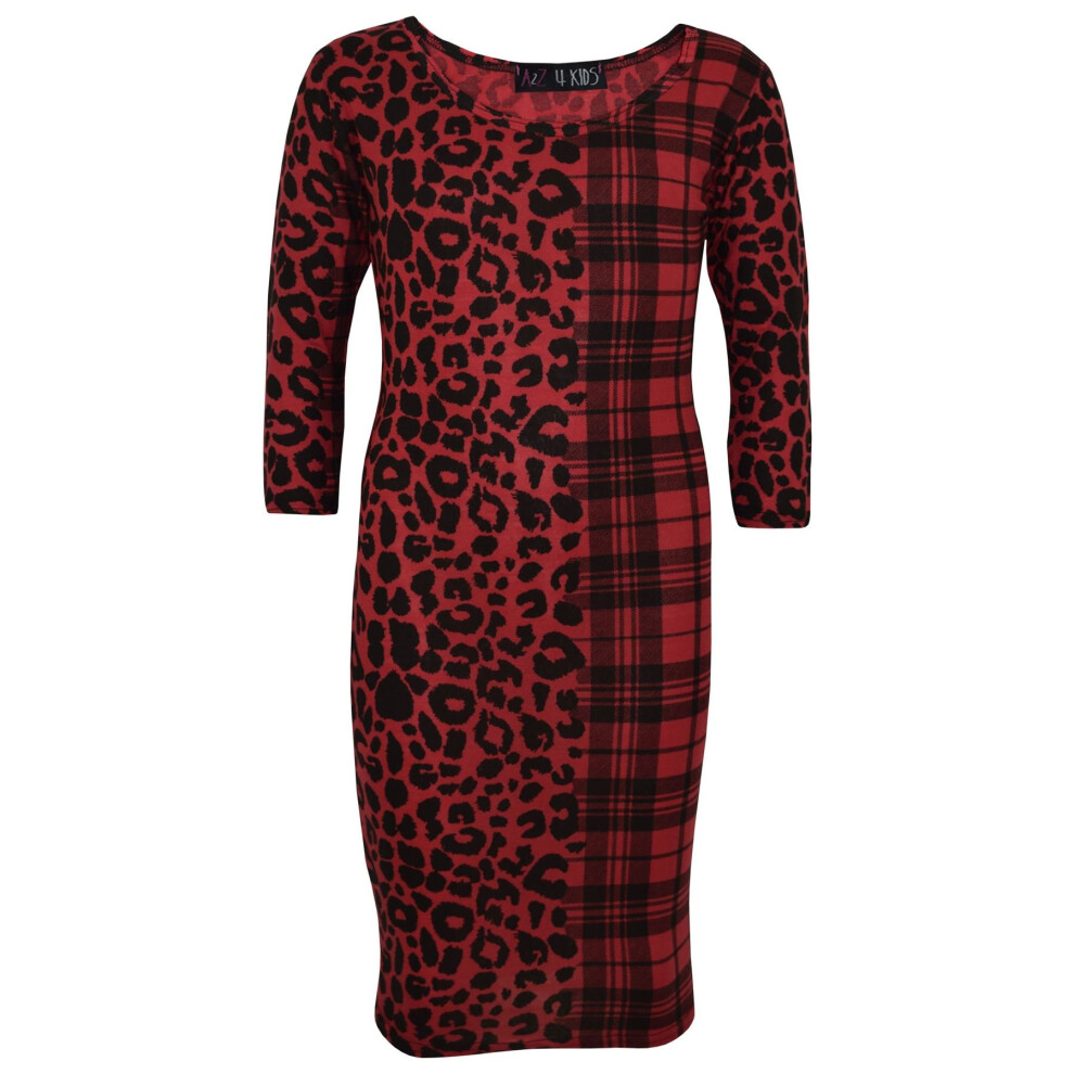 (11-12 Years, Midi Dress) Kids Girls Leopard & Tartan Print Midi Dress Legging Top Bottom Age 5-13 Years