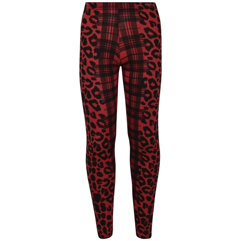 (11-12 Years, Legging) Kids Girls Leopard & Tartan Print Midi Dress Legging Top Bottom Age 5-13 Years