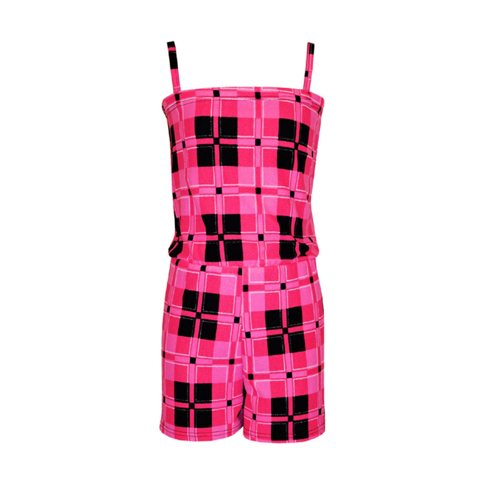 (13 Years) Kids Girls Pink Tartan Check Legging Midi Skater Dress Crop Top Skirt Jumpsuit