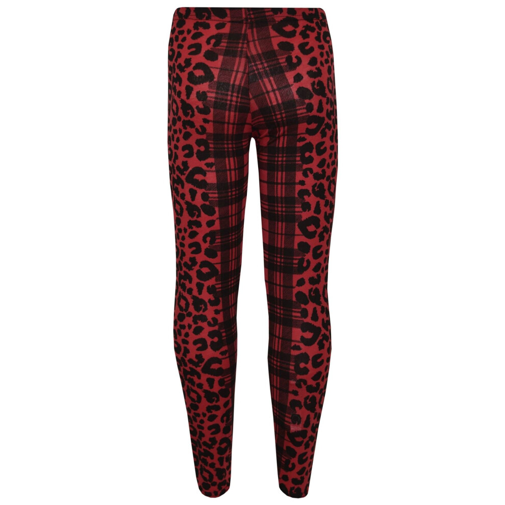 (13 Years, Legging) Kids Girls Leopard & Tartan Print Midi Dress Legging Top Bottom Age 5-13 Years