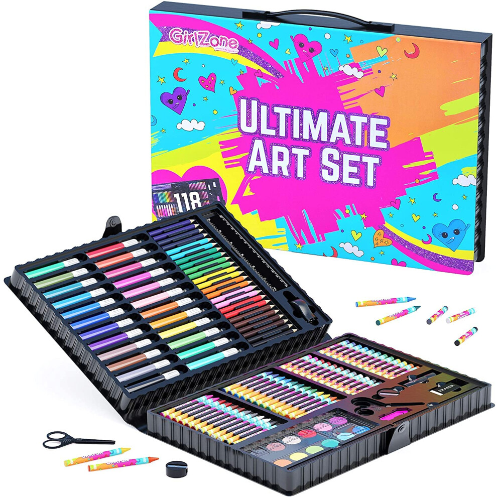 GirlZone Ultimate Art Set for Girls, 118-Piece Awesome Arts and Crafts Kit for Kids, Fun Girls Toys Age 7 Set & Great Gift Idea for Creative Kids