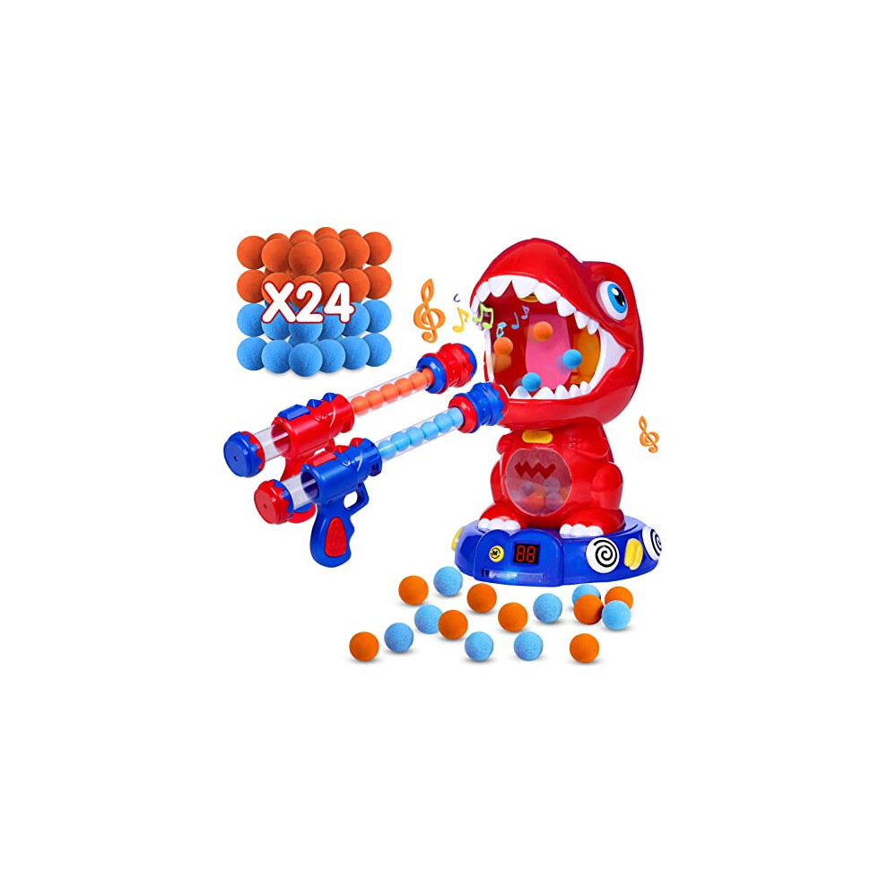 Movable Dinosaur Shooting Toy, Shooting Games for Kids with Spraying 2 Pump Guns 48 Foam Balls with Sound Score Recorder Girls Boys Toys Age 6 7 8 9+
