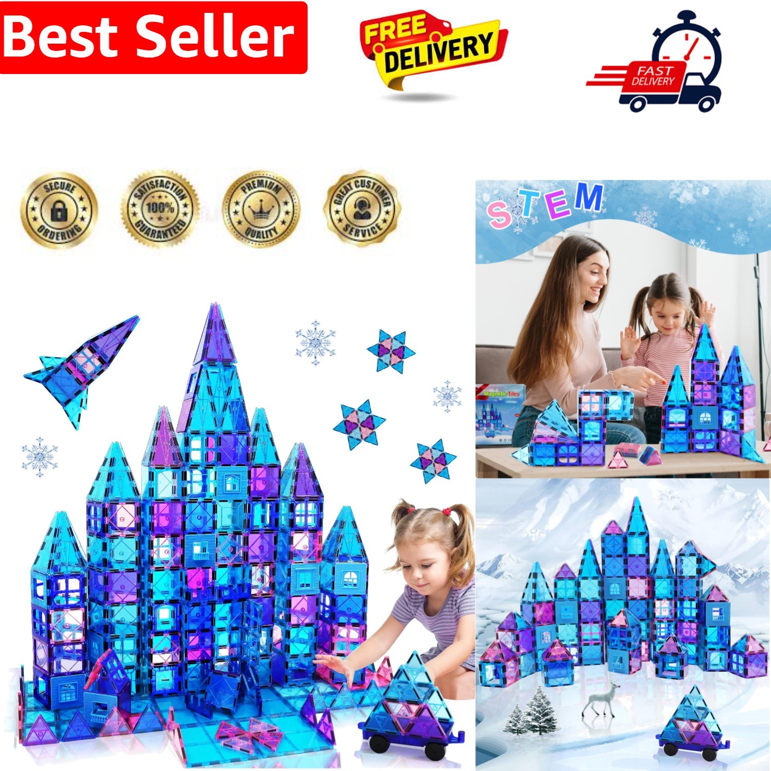 Magnetic Building Blocks Kids Boys Girls Toys Age 6 7 8 9 Magnetic Tiles 3D Castle for Princess Learning Educational STEM Toy 2 3 4 5 6 7 8 Year Old