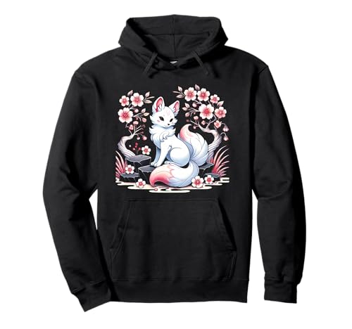 Japanese Kitsune Yokai White Fox Ghost Ukiyo-E Vintage Pullover Hoodie