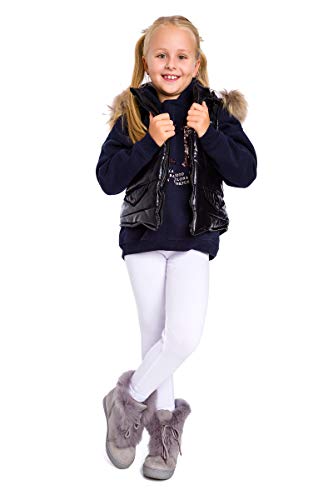 SOFTSAIL Fleece Lined Leggings Girls Children Cotton Kids Leggings Warm School Trousers Kids Fleece Lined Trousers Tights Thermal Pants for Girl, White 9 Years