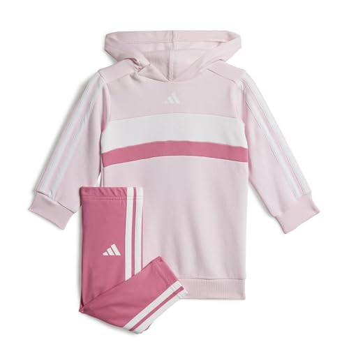 adidas Baby Girls SEASONAL ESSENTIALS TIBERIO 3 STRIPES FLEECE LEGGINGS SET, clear pink/pink fusion/white, 9-12 Months