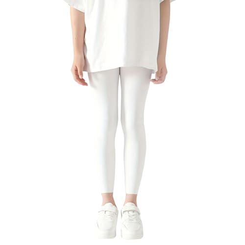 looksy Girls Leggings, Breathable Cotton Fabric, Ankle Length, Range of Classic & Vivid Solid Colours, Kids Activewear, School, Dance, Daily Wear White 10 Years (140 cm)