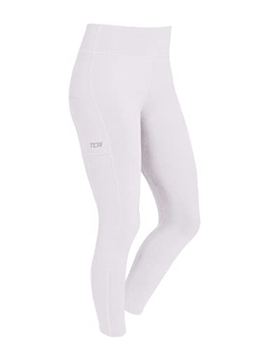 TCA Girls' SuperThermal Performance High Waisted Training Sports Running Tights Leggings with Phone Pocket - Cloud White, 12-14 Years