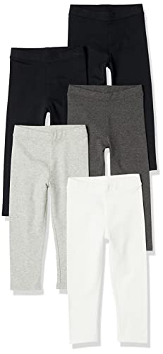 Amazon Essentials Girls' Leggings, Pack of 5, Black/Dark Grey/Light Grey/White, 2 Years