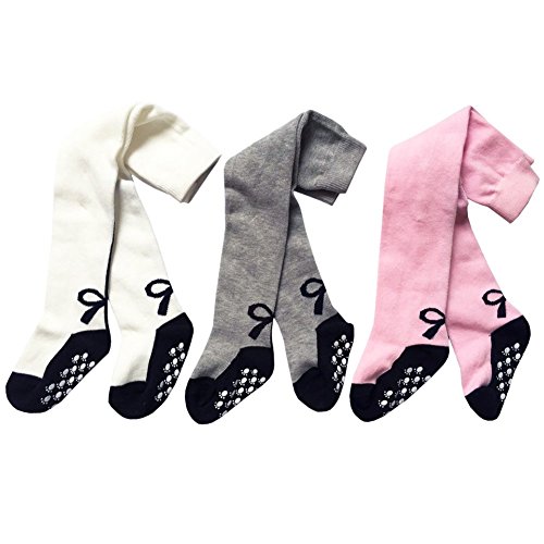 XPX Garment 3 Pack Anti skid Baby Girls Tights Cotton Newborn Girs Leggings For Infant, White,grey,pink, 1-2 Year