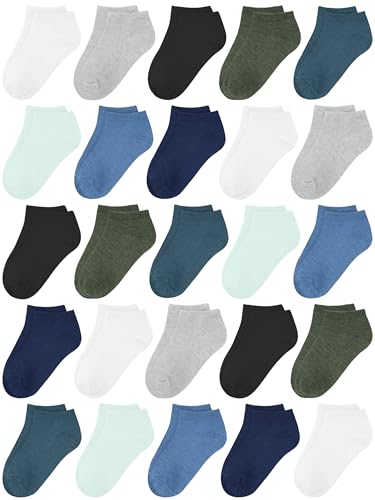 Cooraby 25 Pairs Kids' Socks - Sport Ankle Athletic Socks for Boys Girls -Black White Gray Trainer Socks - for 2-10 Years Boys Girls School Short Socks