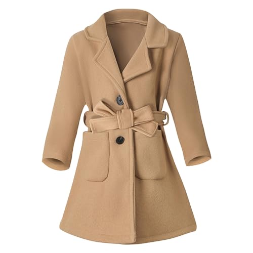 Girls Dress Coat Lapel Wool Blend Long Winter with Belt Girls Winter Dress Coat Girl's Trench Coat (Khaki, 2-3 Years)