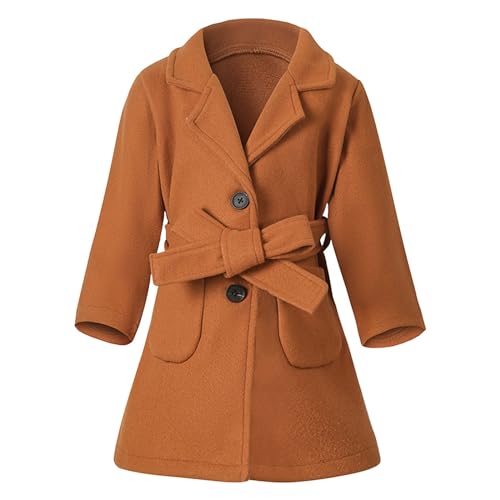Girls Dress Coat Lapel Wool Blend Long Winter with Belt Girls Winter Dress Coat Girl's Trench Coat (Brown, 5-6 Years)