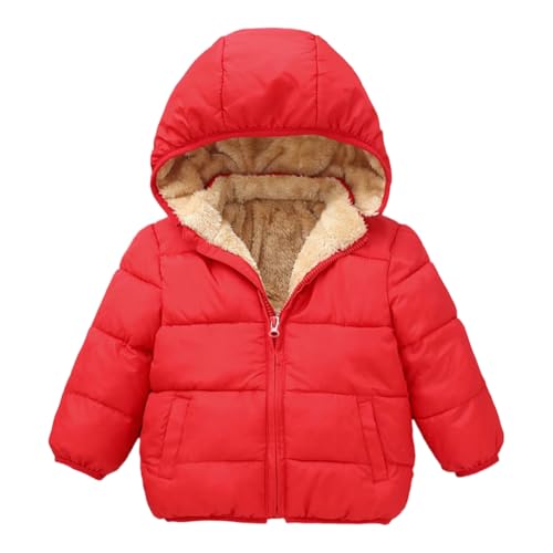 Toddler Baby Hooded, Girls Winter Jacket Padded Coat Puffer Jacket Fleece Lined Trench Coat Kids Girl Teenage Parka Coats for Girls Aged 1-5 Years Red
