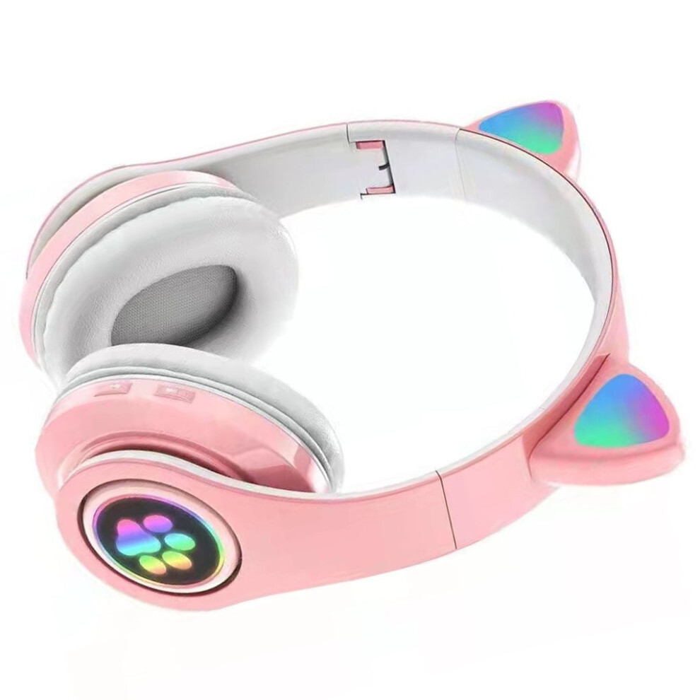 Linyer Kids Girls Wired Wireless Headphones Cat Ear Headsets LED w/Mic Earphone BT5.0 pink