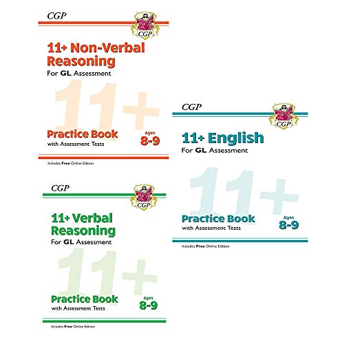 Cgp books gl 11 plus english, non-verbal reasoning, verbal reasoning 3 books collection set - practice book & assessment tests (ages 8-9)