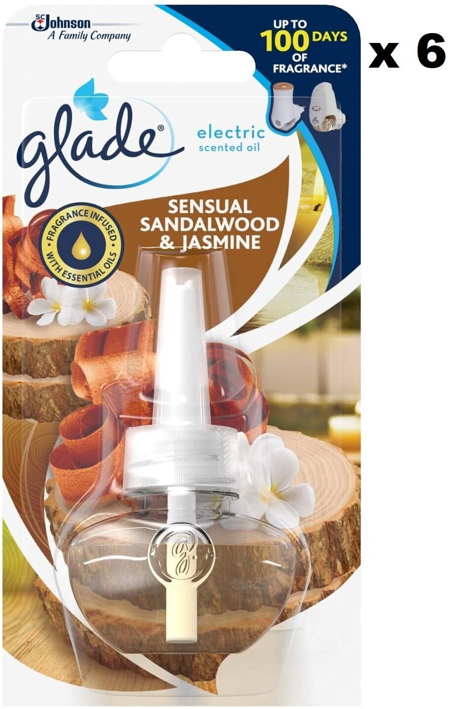 6 x Glade Electric Plug In Refill Sensual Sandalwood & Jasmine 20ml