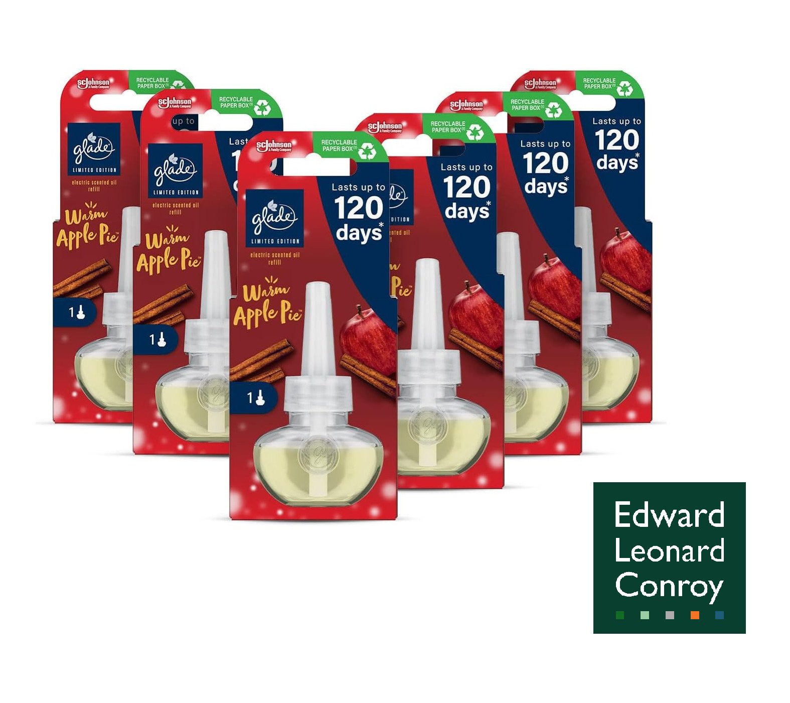 Glade Plug in Air Freshener Refill, Electric Scented Oil Room Air Freshener, Warm Apple Pie, Pack of 6 (6 x 20ml)