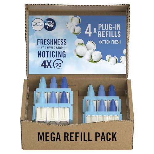 Febreze 3Volution Air Freshener Plug-In Refills, 4 Refills (20ML x 4), Cotton Fresh, 3 Alternating Scents to Fight Odours