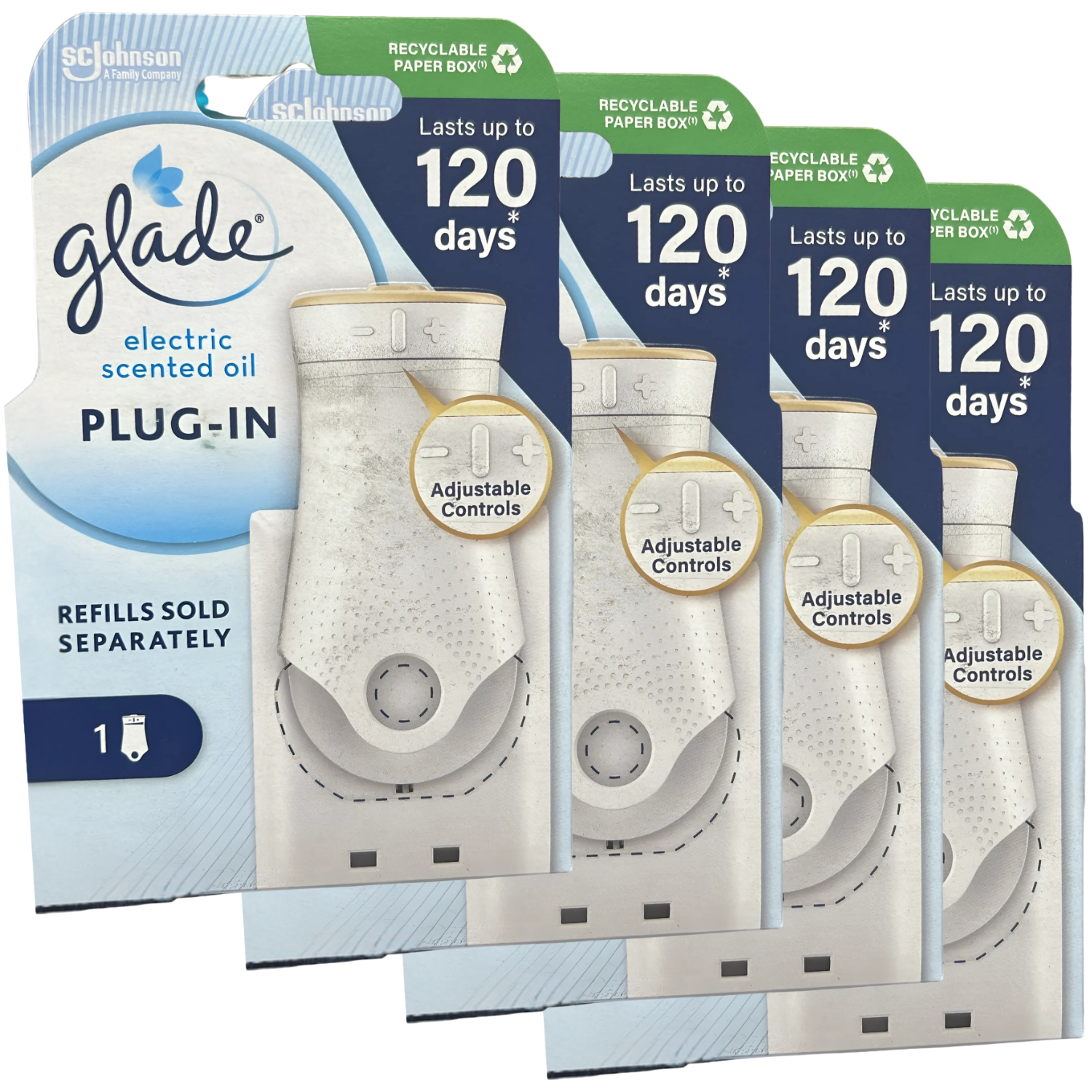 Glade Plug in Air Freshener Holder and Refill, Electric Scented Oil Room Air Freshener, Clean Linen, Pack of 4 Starter Kits, (4 x Holder and 4 x 20 ml Refill)