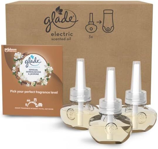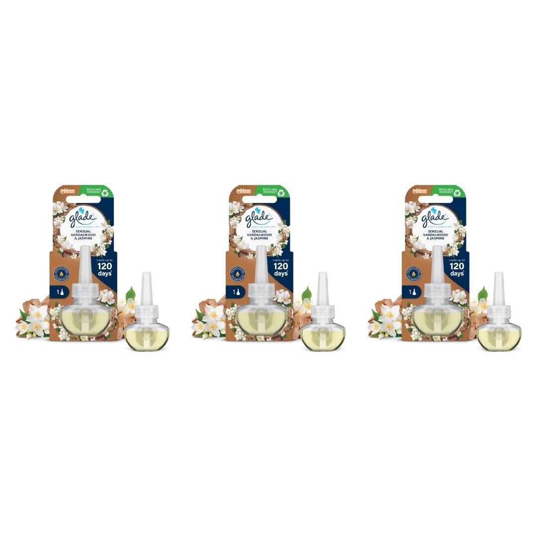Glade Plug in Air Freshener Refill, Electric Scented Oil Room Air Freshener, Sandalwood & Jasmine, Pack of 3 Refills (3 x 20ml)