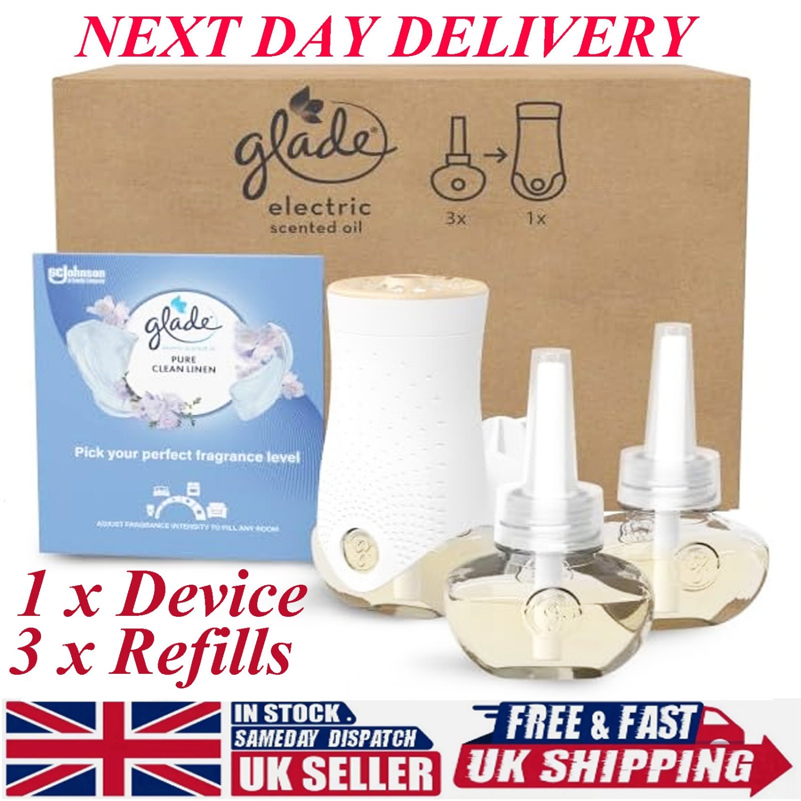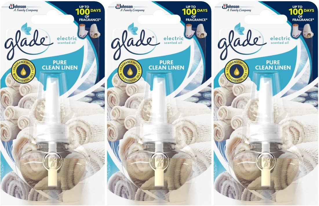 Glade Plug in Air Freshener Holder and Refill, Electric Scented Oil Room Air Freshener, Clean Linen, 1 Holder and 3 Refills (3 x 20ml)