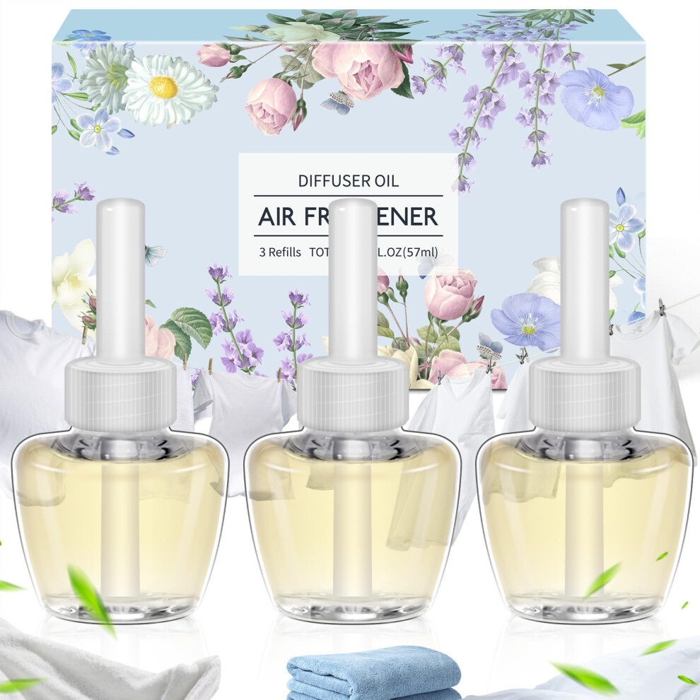 Scent-Hi Plug in Air Freshener Refills, Plug in Diffuser Refill Scent 3 Pack, Long lasting Fragrance, Compatible with Air Wick, Glade Plugin(Linen)