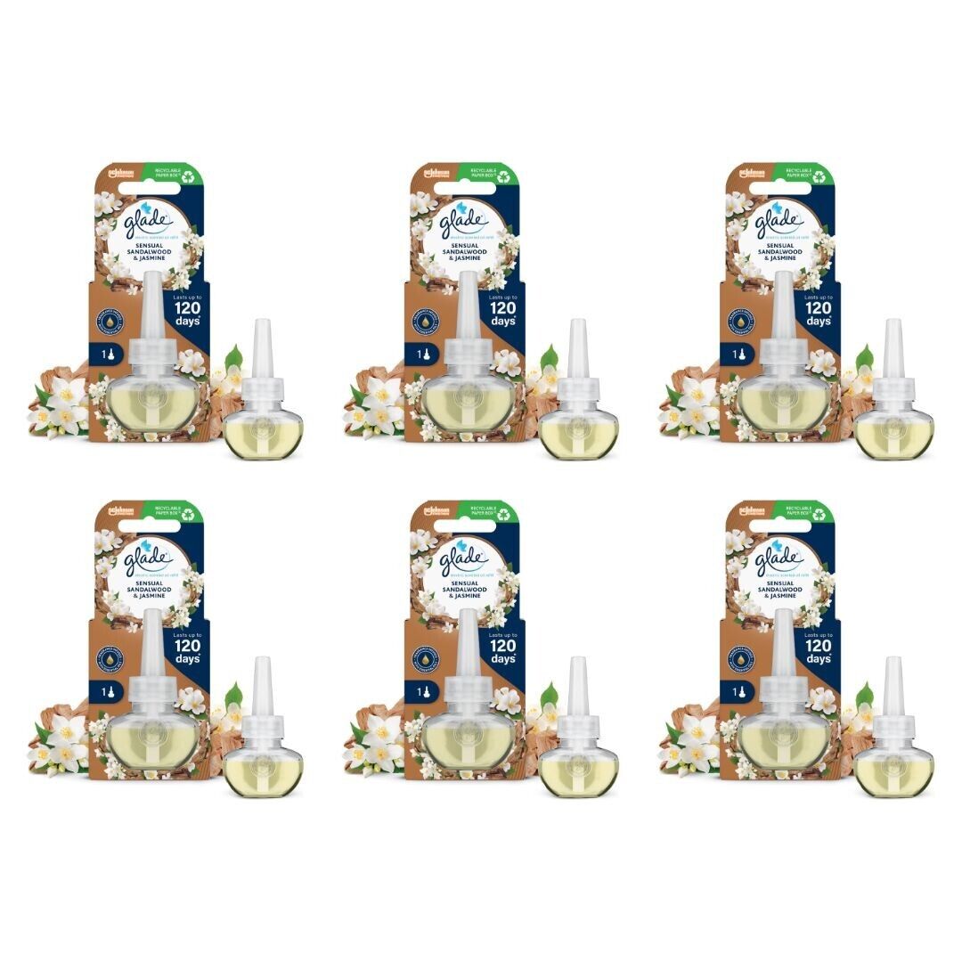 Glade Plug in Air Freshener Refill, Electric Scented Oil Room Air Freshener, Sandalwood & Jasmine, Pack of 6 (6 x 20ml)