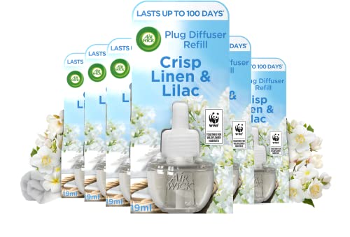 Air Wick Electrical Plug In Refills with Essential Oils, Crisp Linen and Lilac, 19ml Refill x 6