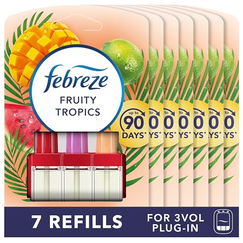 Febreze 3Volution Plug In Air Freshener Refill, Fruity Tropics, 7 Refills (20ML X 7), Odour Fighter & Bathroom Air Freshener, Febreze Plug In Refill 3volution