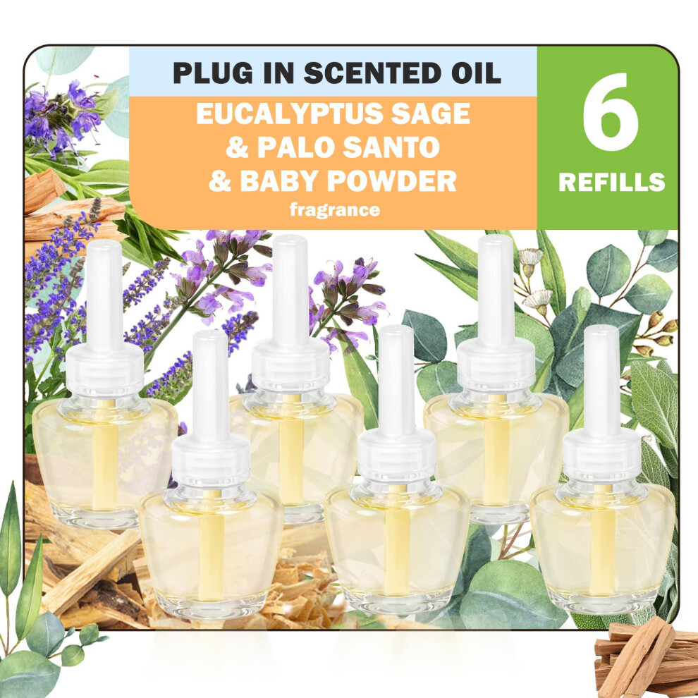 Scent-Hi Plug in Air Freshener Refills Suitable for Air Wick & Glade, Palo Santo, Eucalyptus Sage, Baby Powder Plug in Diffuser Refill Long lasting