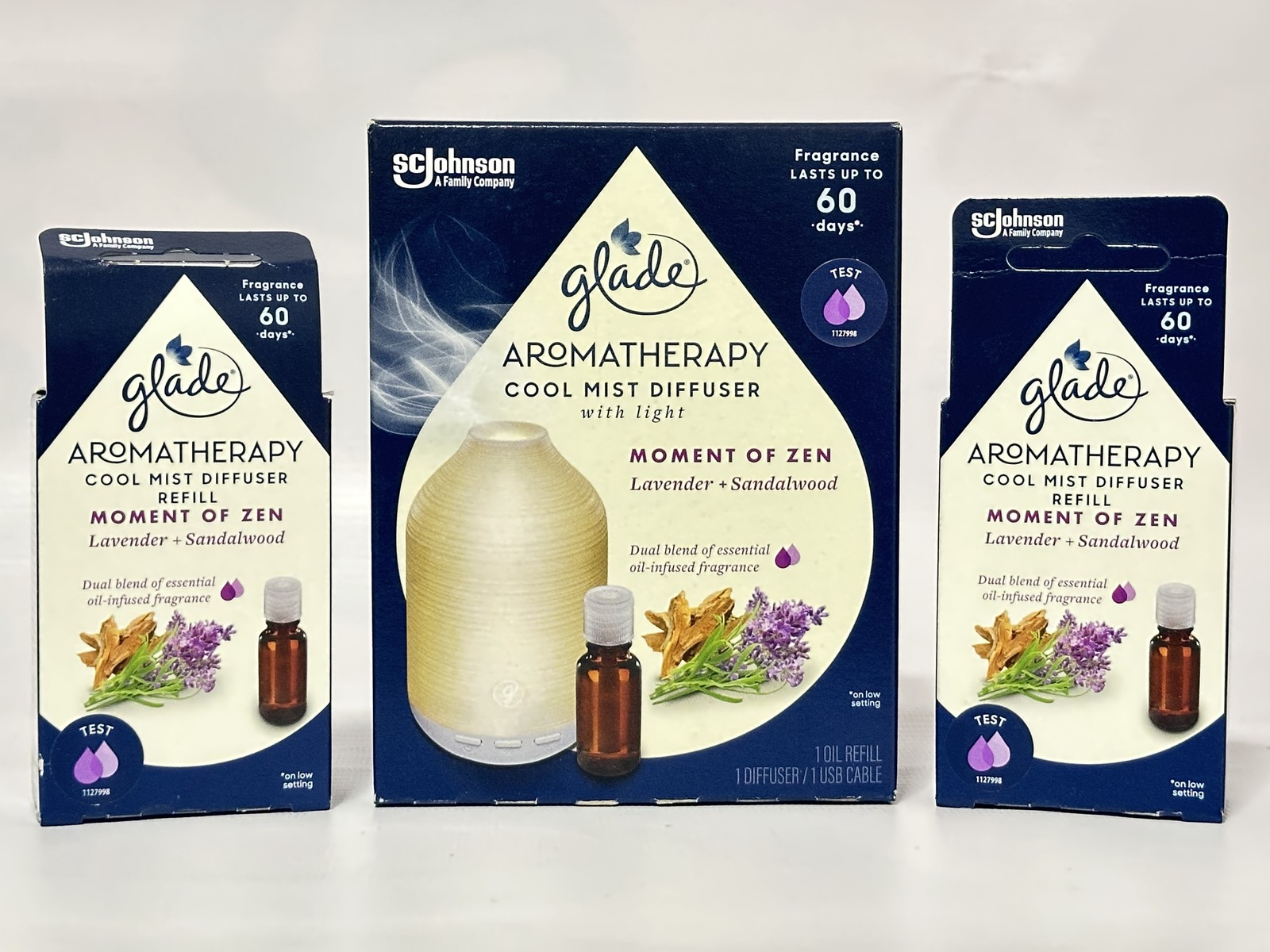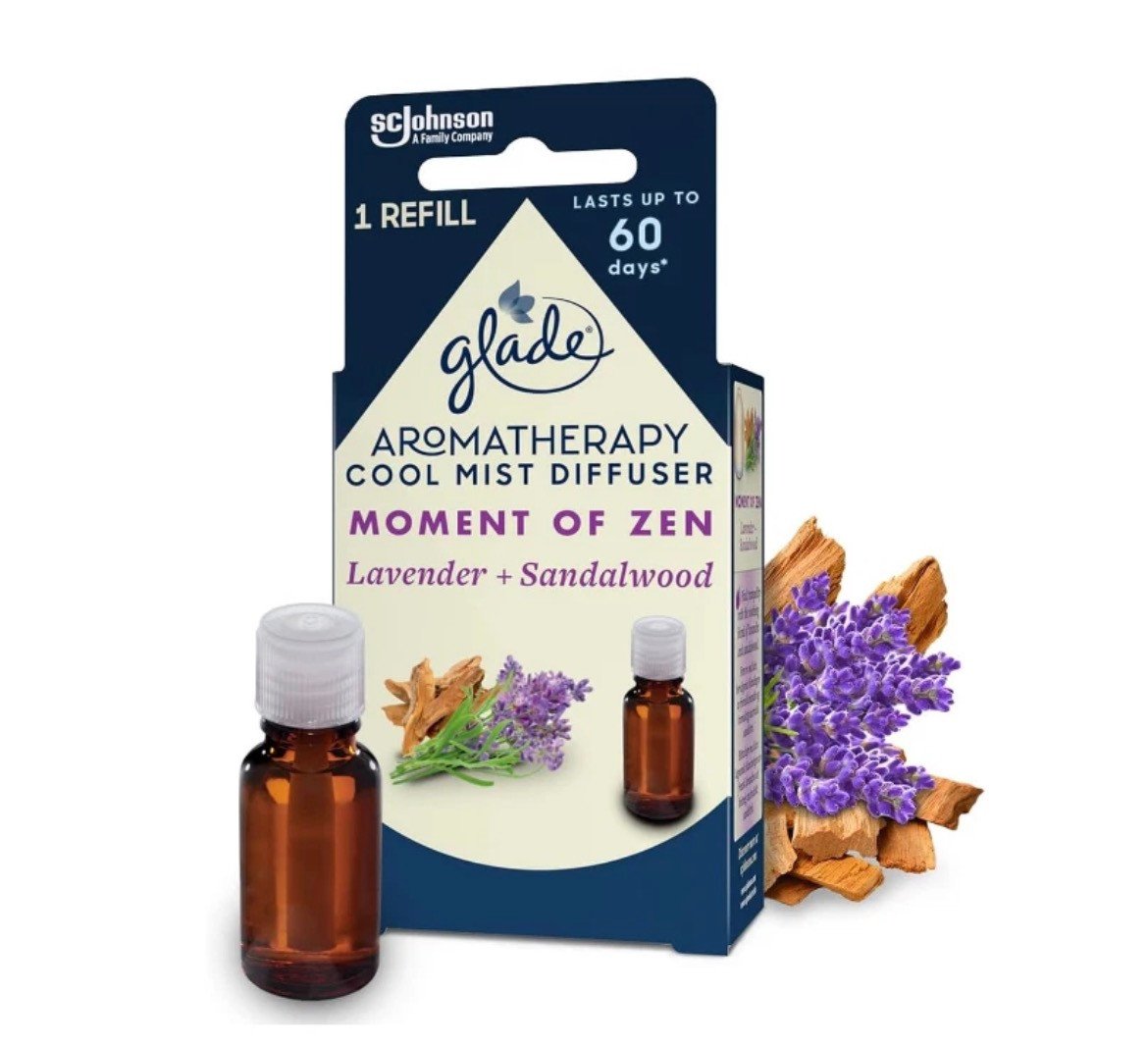Glade Aromatherapy Cool Mist Diffuser Gift Set Lavender Sandalwood 3 Refills