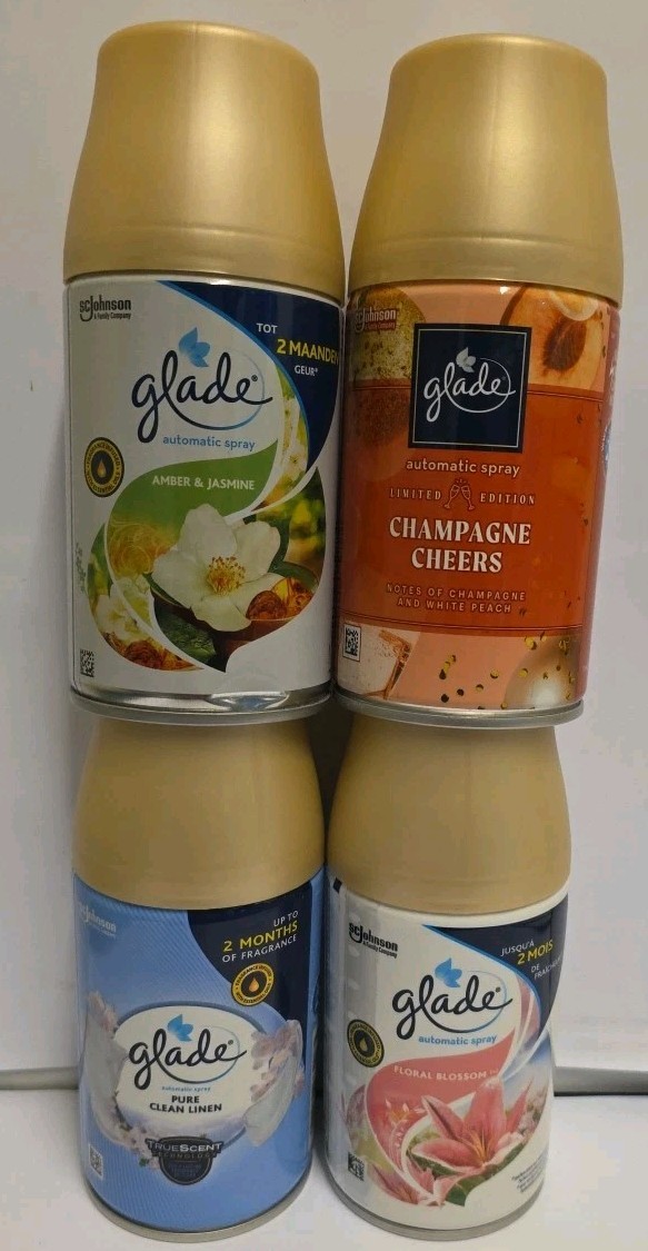 Glade Automatic Spray Refills 269ml x 4 mix pk JASMIN-CHAMPAGNE-FLORAL-LINEN