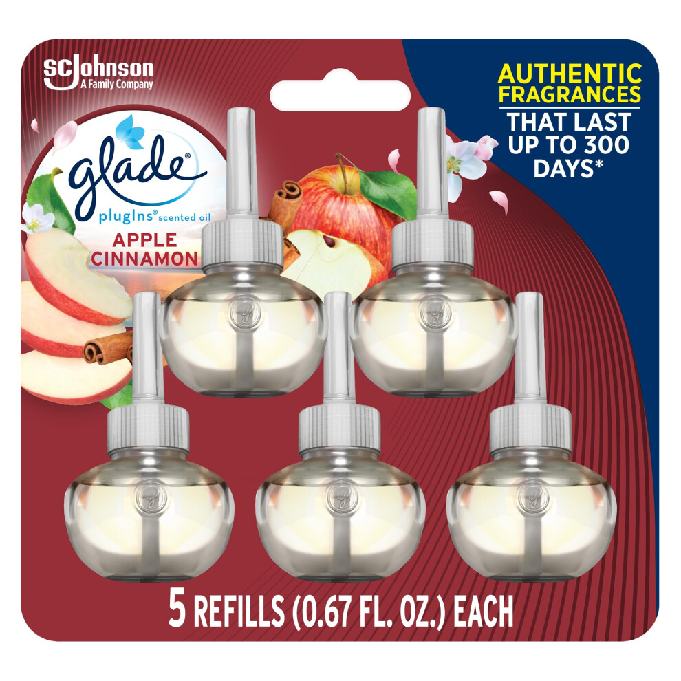 Glade PlugIns Refills Air Freshener, Scented and Essential Oils for Home and Bathroom, Apple Cinnamon, 3.35 Fl Oz, 5 Count