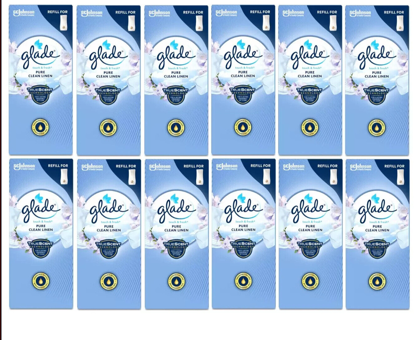12 x 10ml GLADE TOUCH N FRESH REFILLS CLEAN LINEN.