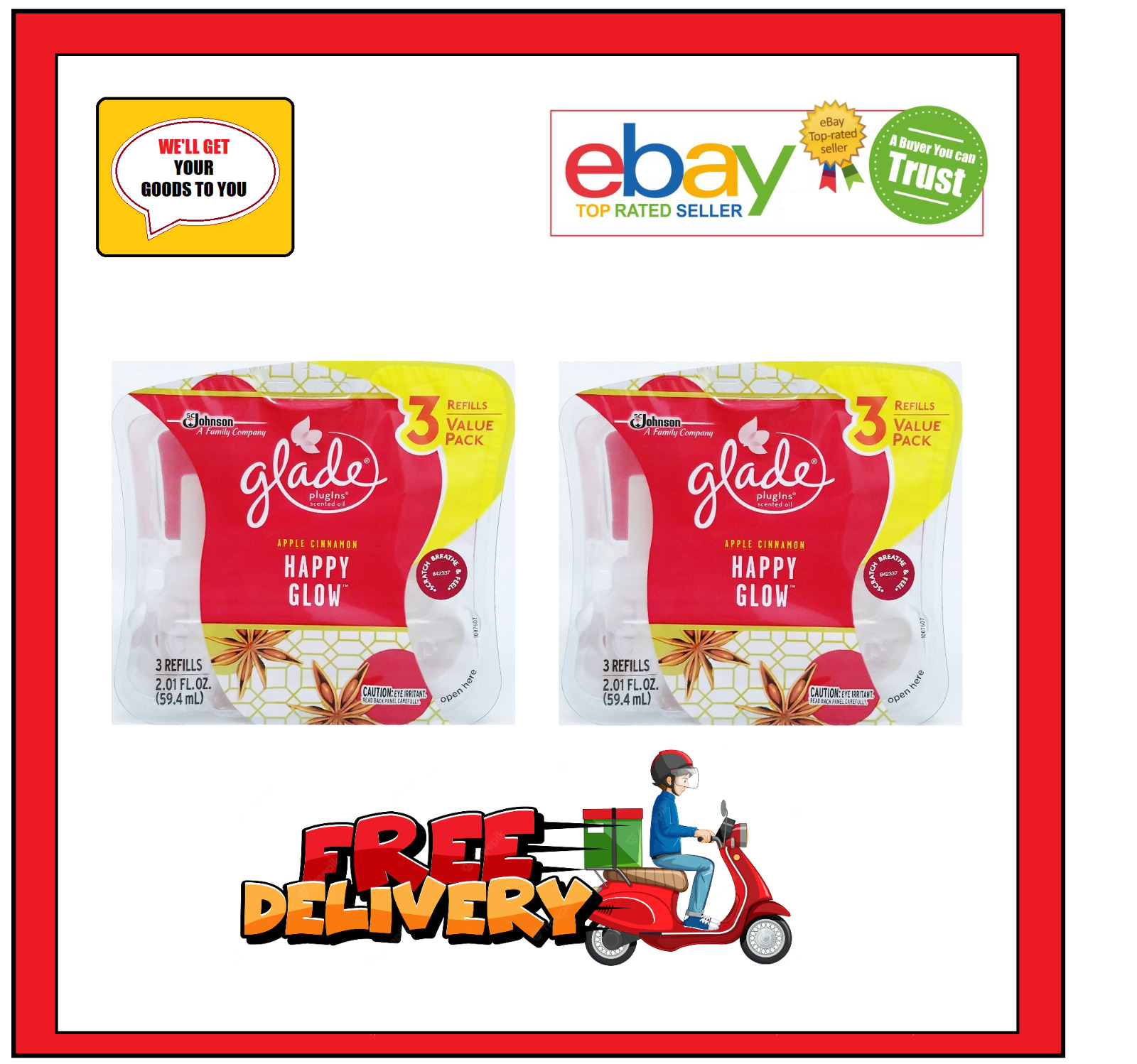 2 Packs (6 REFILLS) - Glade Plug in Refills - Happy Glow - APPLE & CINNAMON