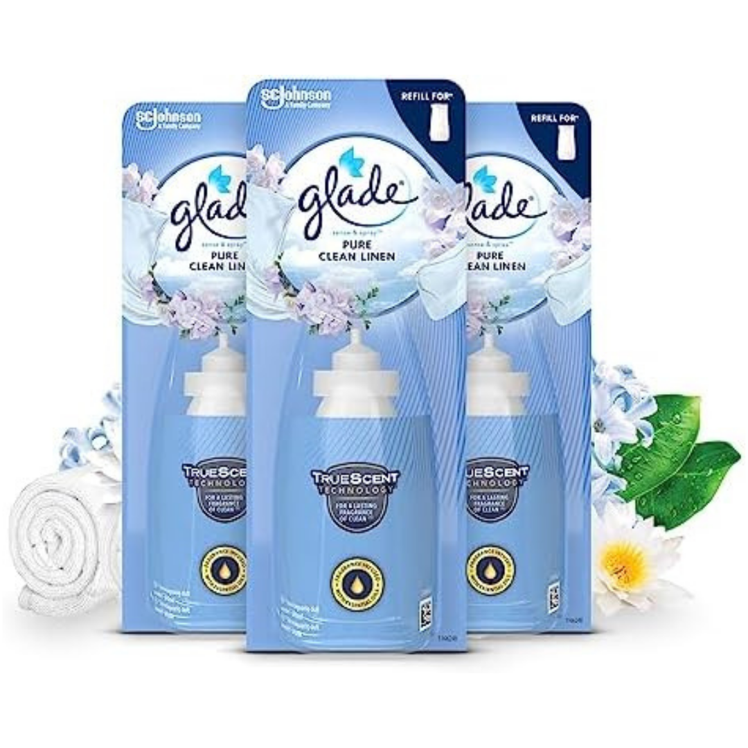 Glade Sense & Spray Air Freshener Refill, Motion Activated Automatic Room Spray and Odour Eliminator for Home, Clean Linen, 3 Refills (3 x 18ml)