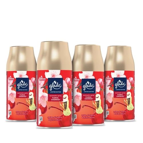 Glade Automatic Air Freshener Refills, Room Spray & Odour Eliminator for Home, Long-lasting Fragrance Infused with Essential Oils, Frosted Floral Cherries, Pack of 4 (4 x 269ml), Packaging May Vary