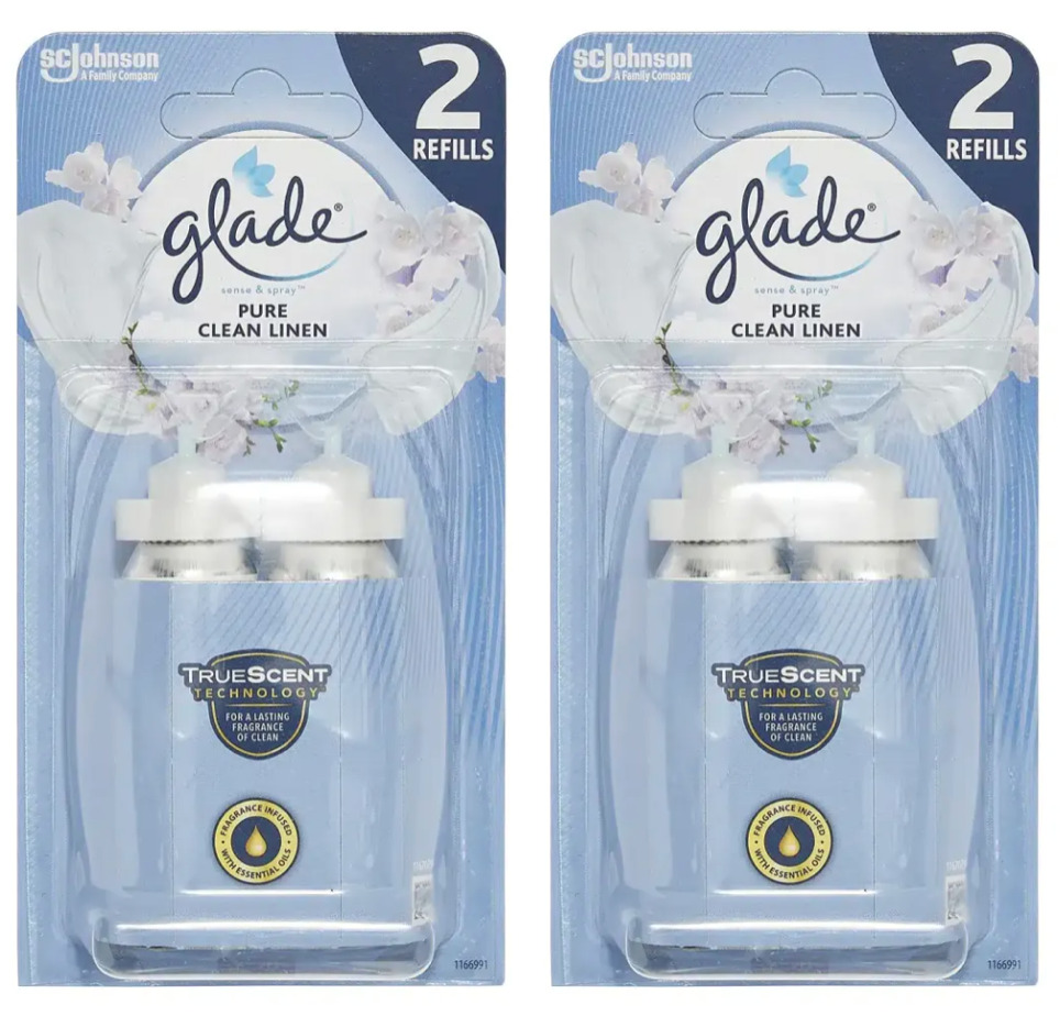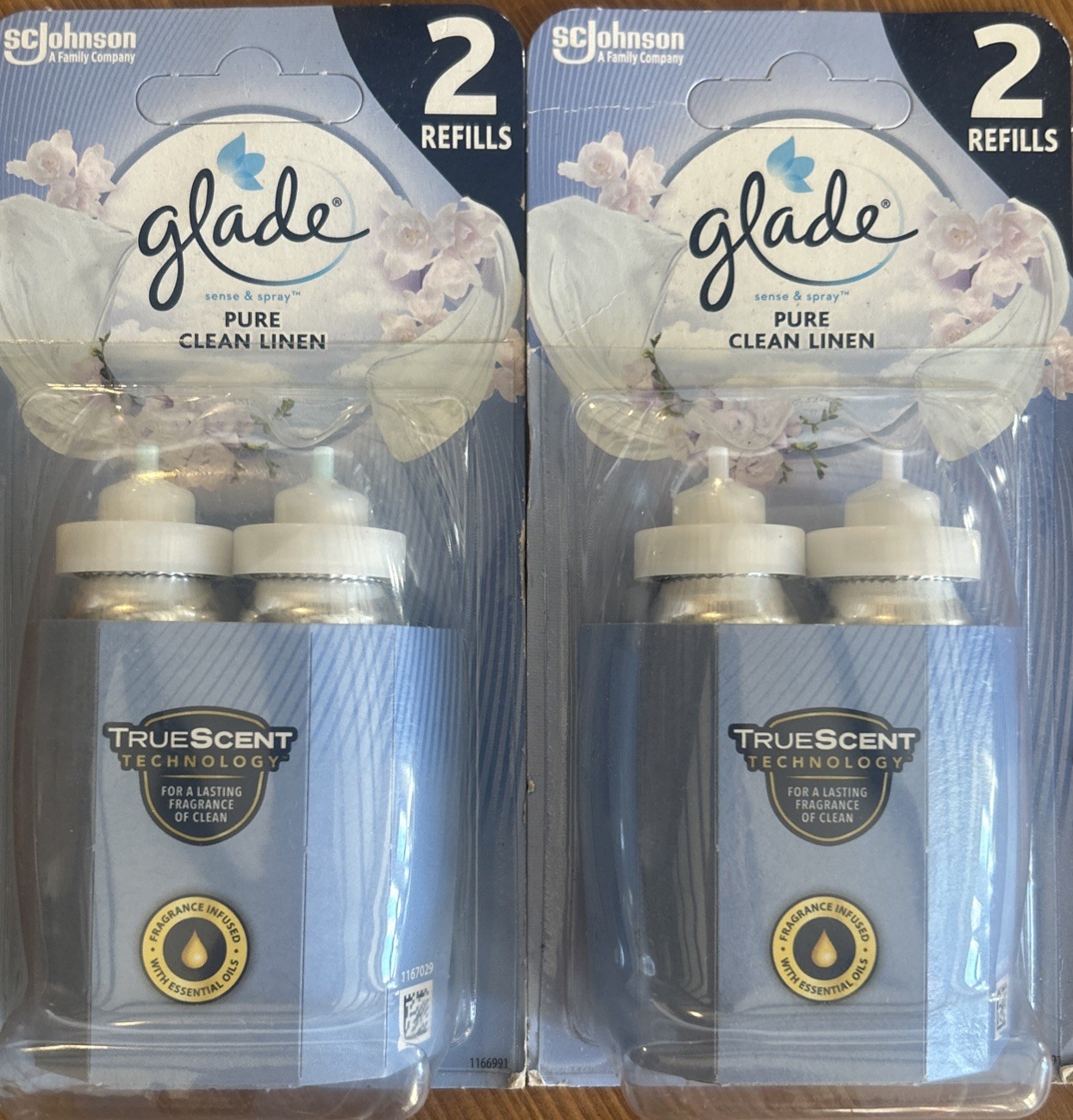 2 X Glade Sense And Spray Refills Automatic Spray Pure Clean Linen Twin 18ml