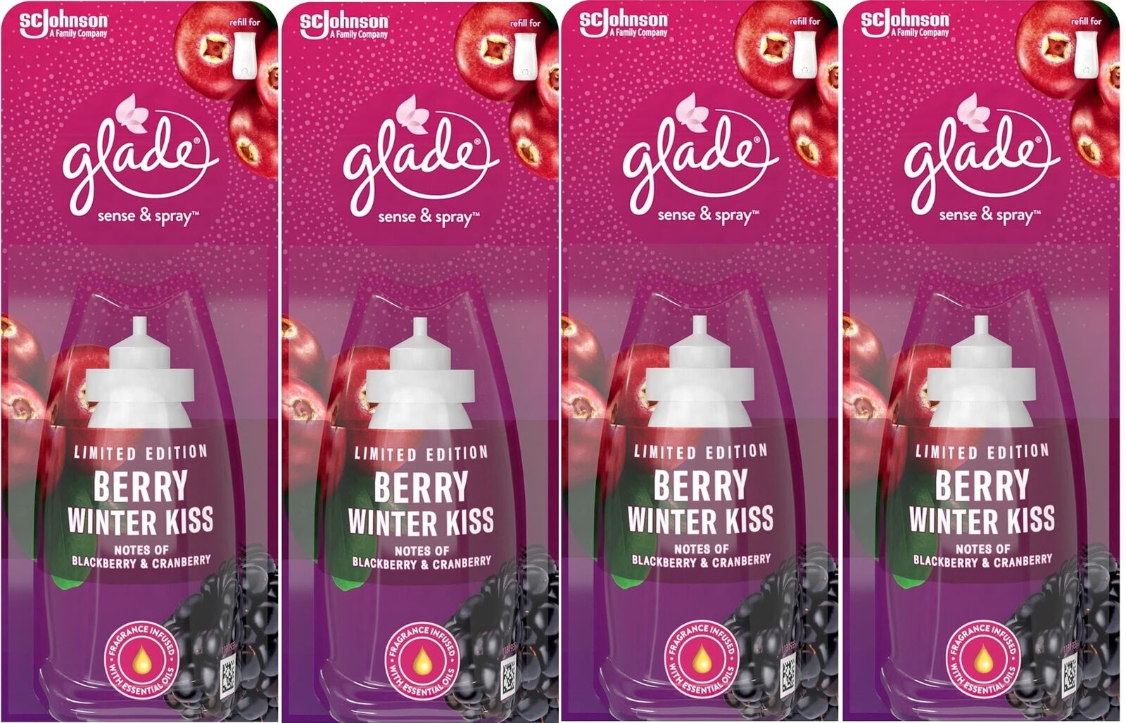 4 x 18ml Glade Sense and Spray Refill - Berry Winter Kiss