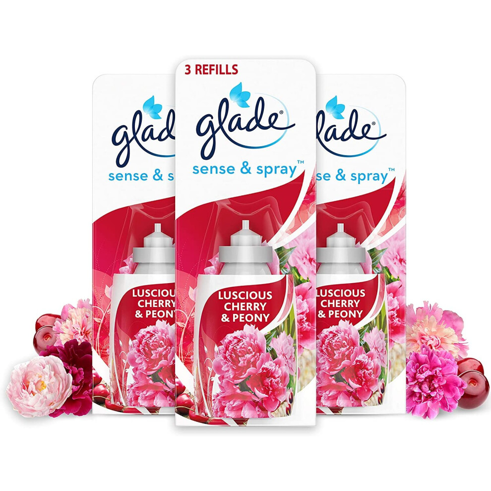 Glade Sense & Spray Diffuser Refills, Automatic Air Freshener Refills for Home, Pack of 3, Cherry & Peony