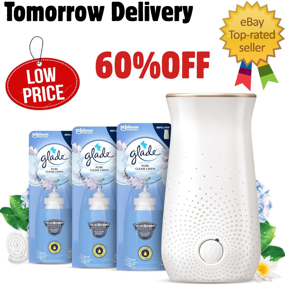 Glade Sense & Spray Air Freshener Diffuser & 2 Refills, Automatic Spray for Home, Clean Linen