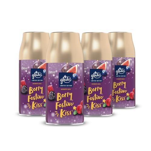 Glade Automatic Air Freshener Refills, Room Spray & Odour Eliminator for Home, Long-lasting Fragrance Infused with Essential Oils, Berry Festive Kiss, Pack of 4 (4 x 269ml)