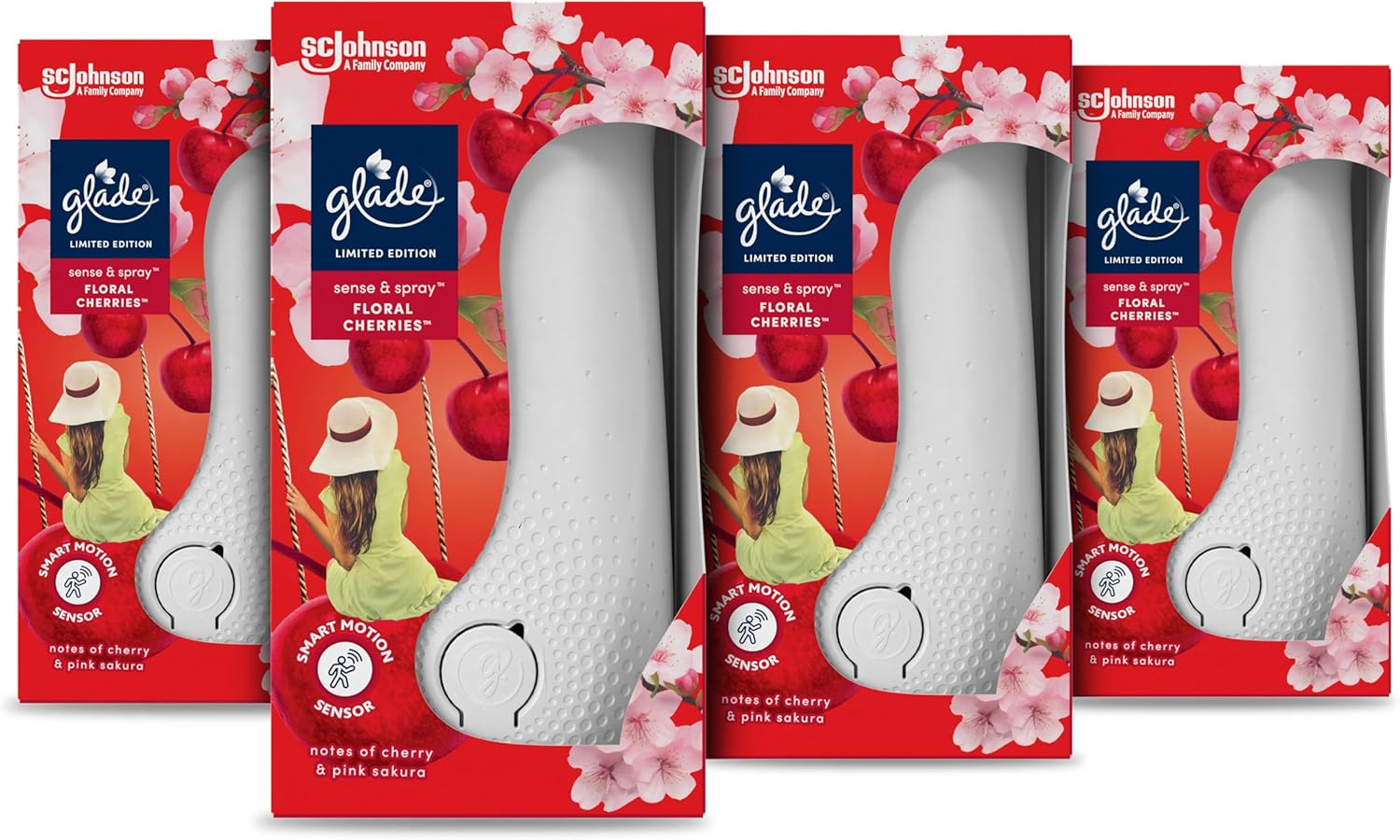 Glade Sense & Spray Air Freshener Refill, Motion Activated Automatic Room Spray and Odour Eliminator for Home, Cherry & Peony, 8 Refills (8 x 18ml)