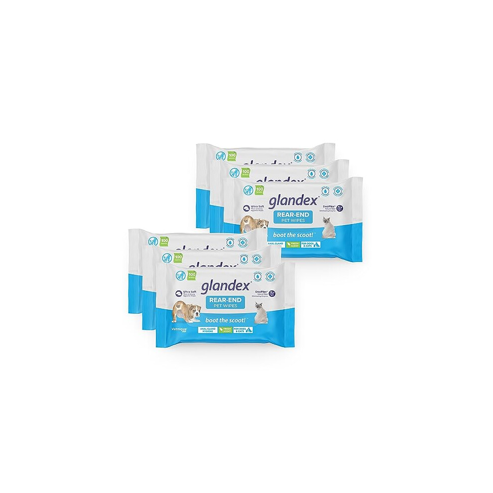Glandex Dog, Cat, Pet Wipes Cleansing Deodorizing Hygienic Anal Gland Grooming Wipes - by Vetnique Labs⦠(Case of 6 Pouches)