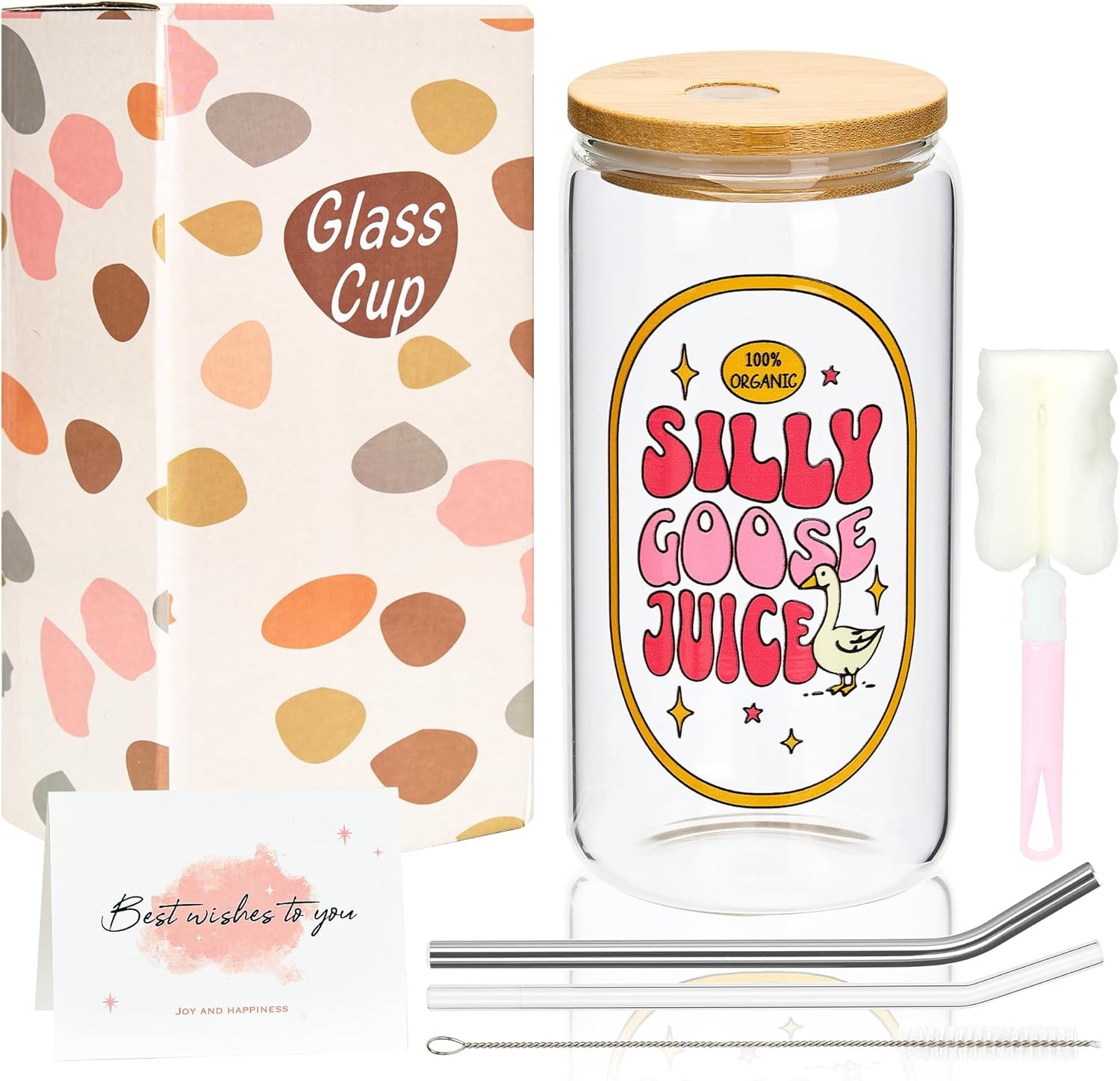 Silly Goose Juice Glass with Lid and Straw - Funny Birthday Gifts for Women, Be