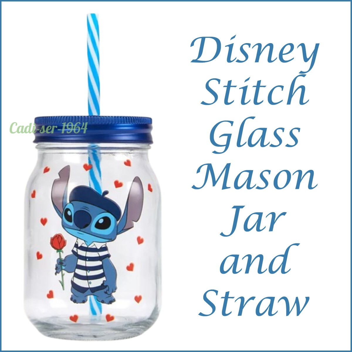 Disney Stitch Glass Mason Jar And Straw NEW Lilo & Stitch