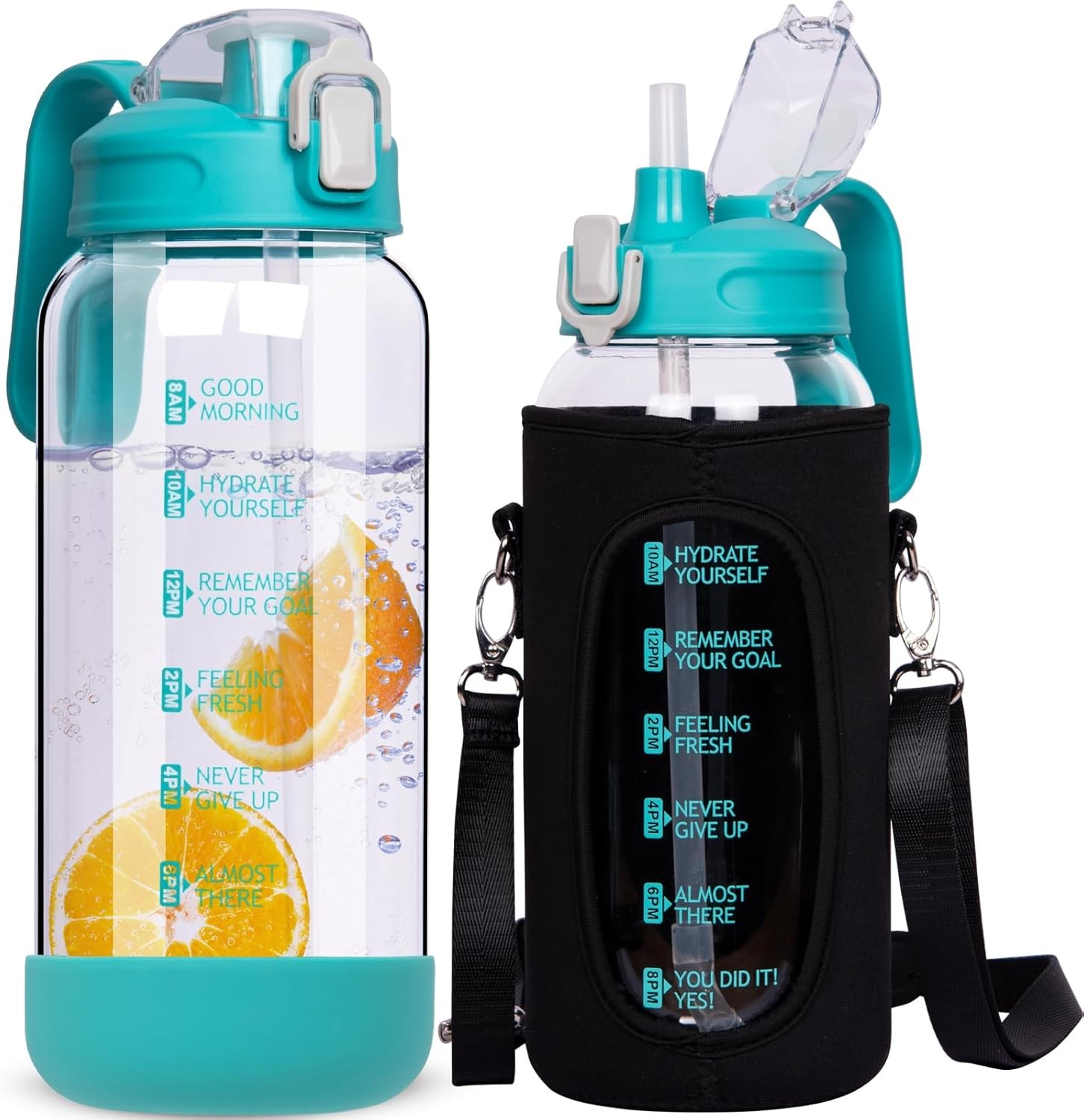 64Oz Glass Water Bottles with Straw, Glass Bottle with Silicone Sleeve and9478