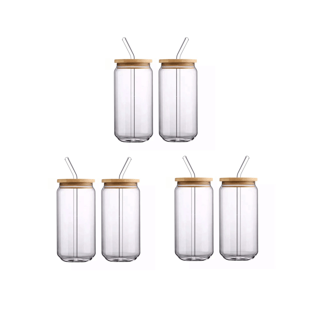 6X(Drinking Glasses with Bamboo Lids and Glass Straw 2PCS Set, 16Oz Can2184