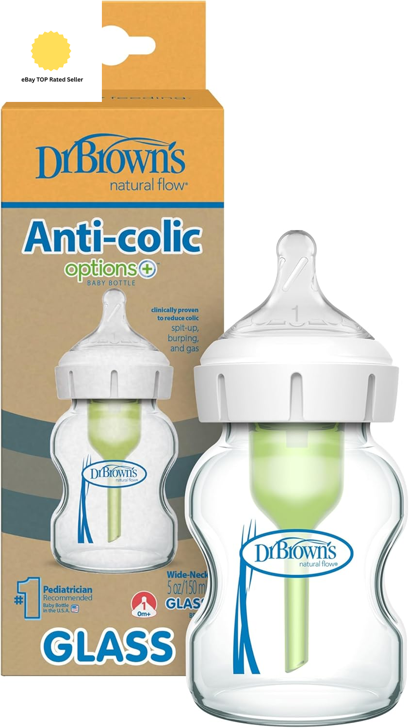 Dr. Brown'S Natural Flow Options+ Anti-Colic Glass Baby Bottle, Wide-Neck, 5 Oz/